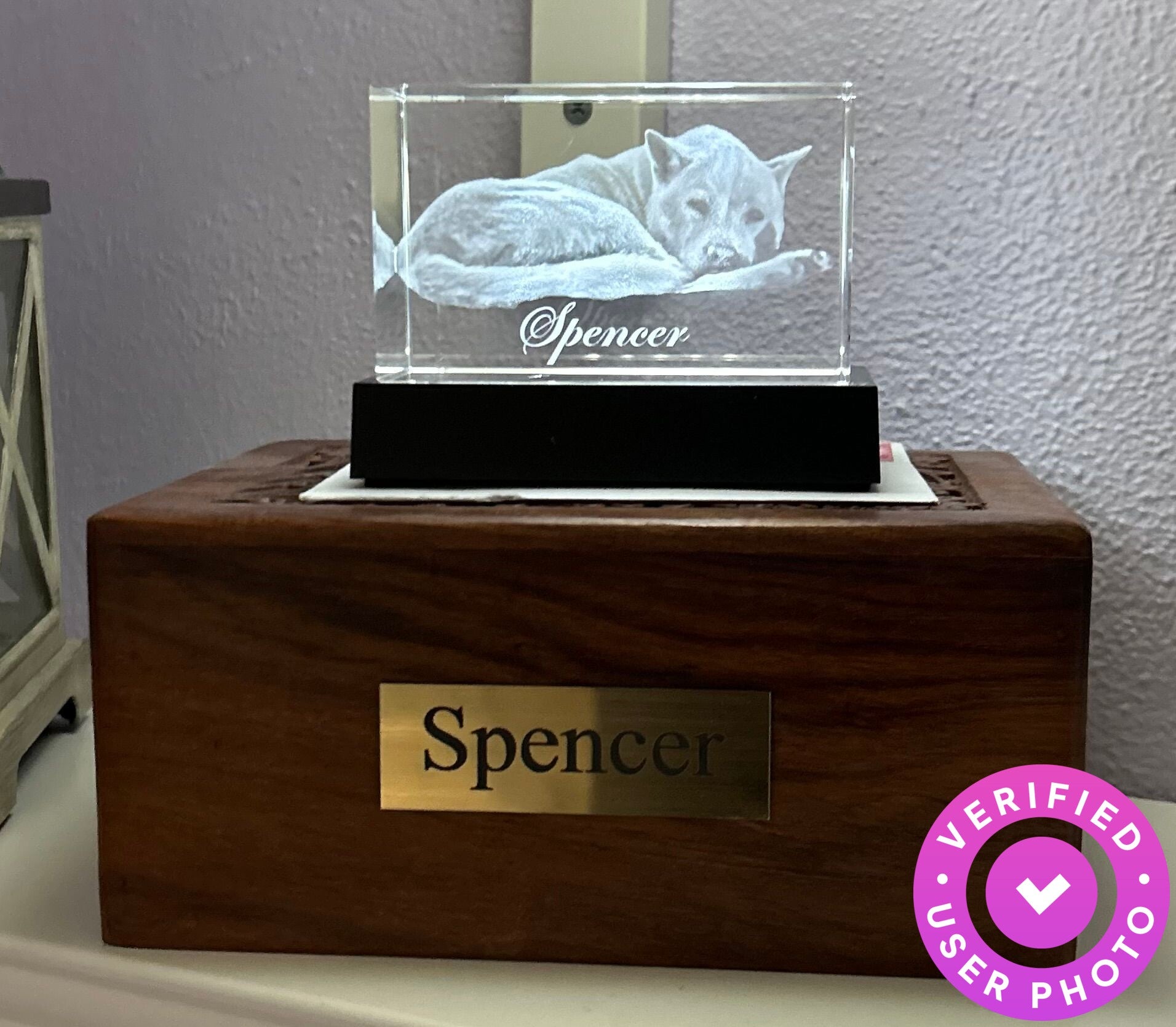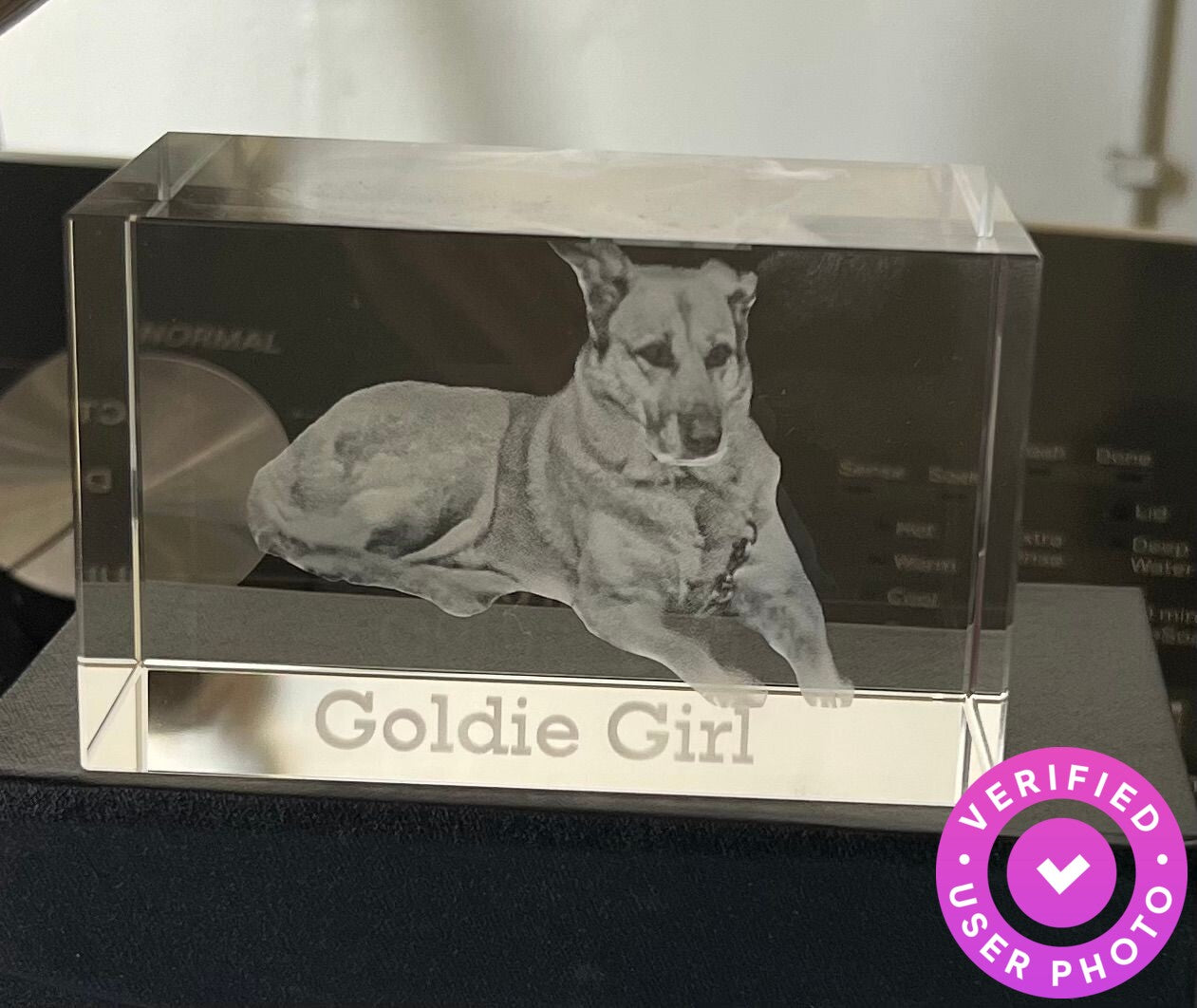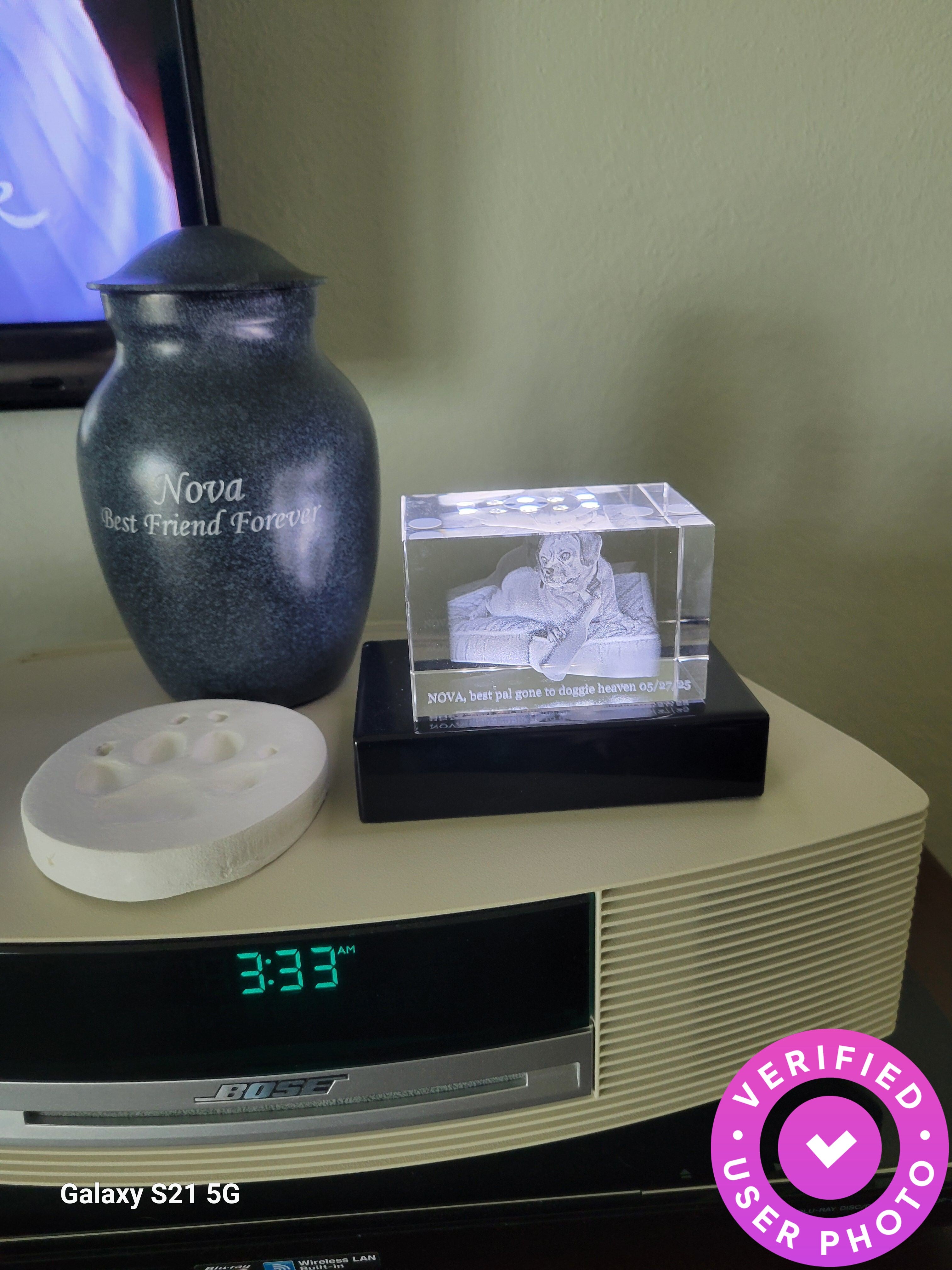 I purchased a Photo Crystal as a memorial for our family dog who recently had to be put down. I saw an ad for Crystal Clear Memories on Insta and decided that was what I wanted to get to remember our dog by. When it arrived, I was amazed at the detail that was captured in the crystal, and how realistic the picture of our dog was. Phenomenal!!