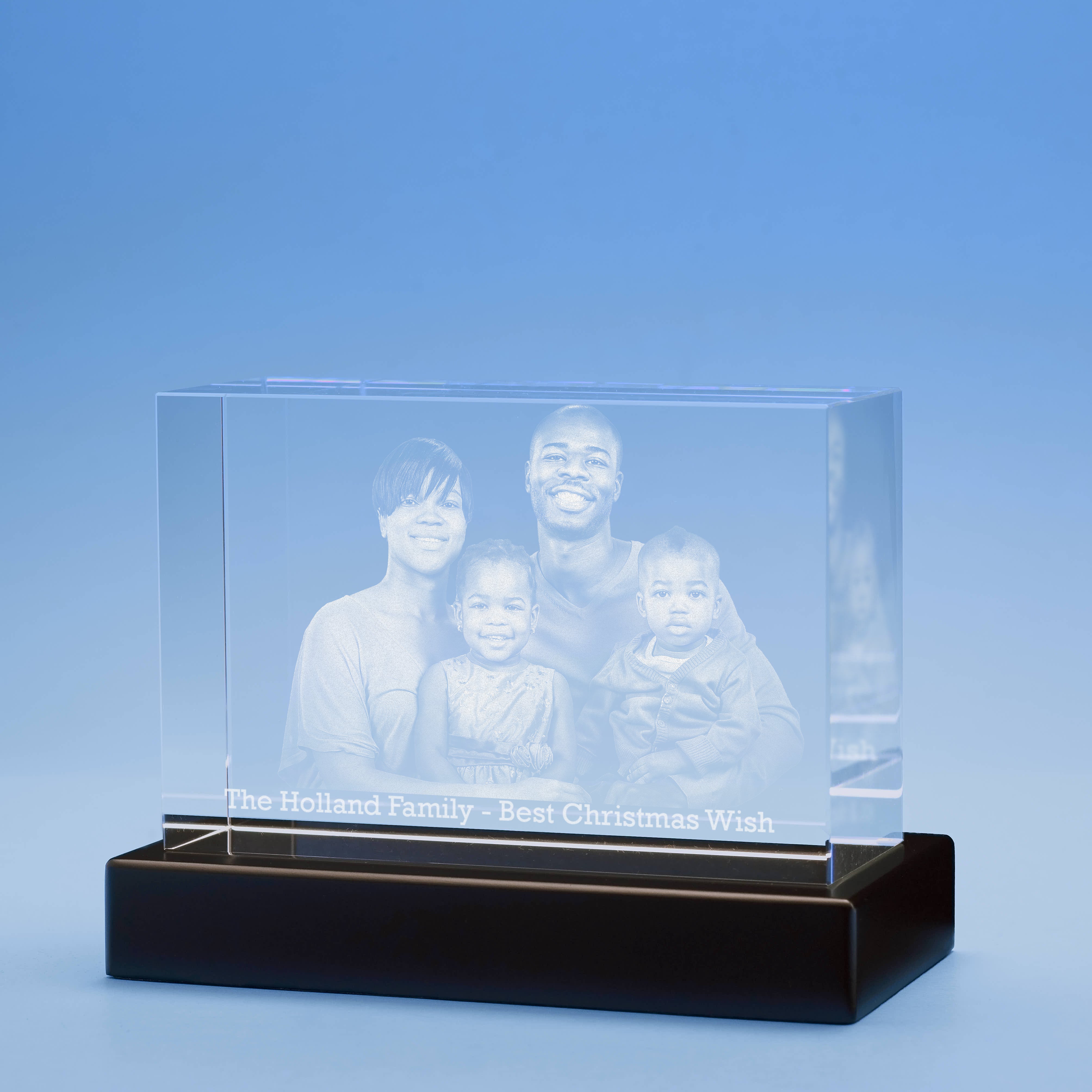 Excited about giving this gift! My son was gifted a family when he married the girl of his dreams! Was able to capture a wonderful photo of his new family in crystal!!!