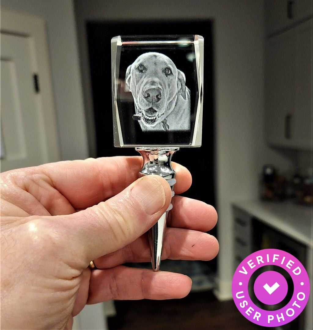Your image is beautifully engraved inĀ 3D, with a depth effect, inside of this crystalĀ wine stopper that is sure to make you, or someone you love, smileĀ with every pop of the top. The crystal is made of beautiful glass and measures 50mm * 40mm * 25mm (2" long, 1.6" wide, 1" deep).
